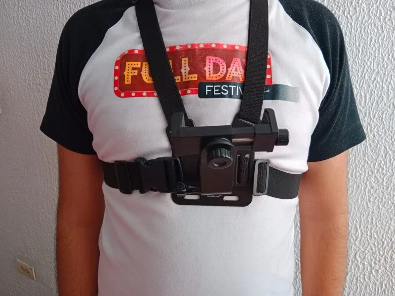Mounting System: Adjustable chest strap with phone/camera clip